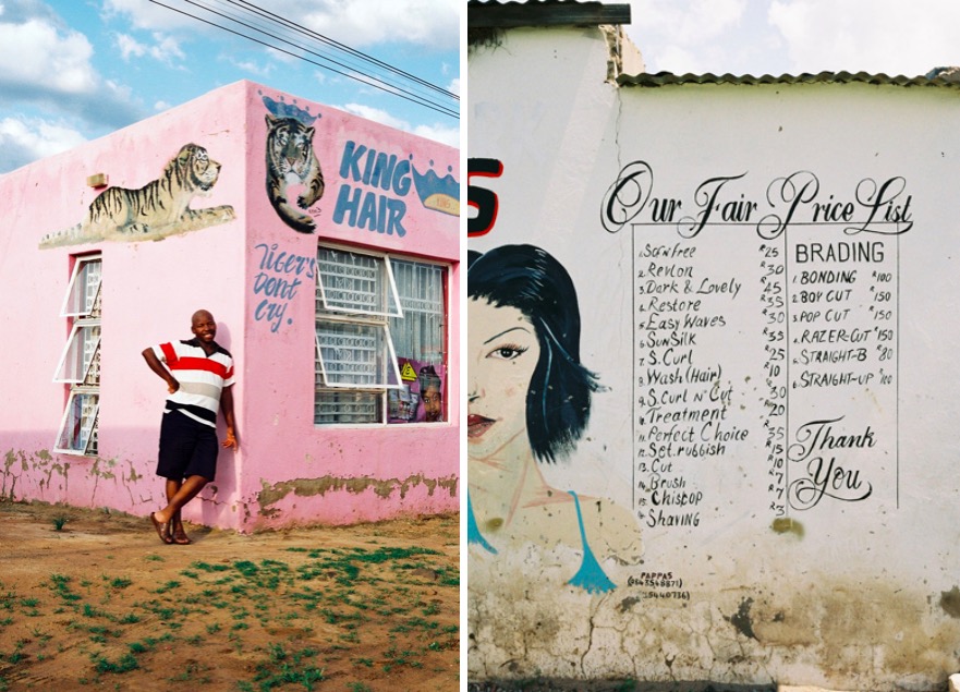 My camera broke that day – epic blogging fail! – so I didn’t take any photos, which is why I’m excited to come across these photographs by Simon Weller. He documented the shops and salons for his beautiful coffee table book, South African Township Barbershops and Salons, published in 2009. It’s filled with charming signage art unique to these social hubs in the local black townships.