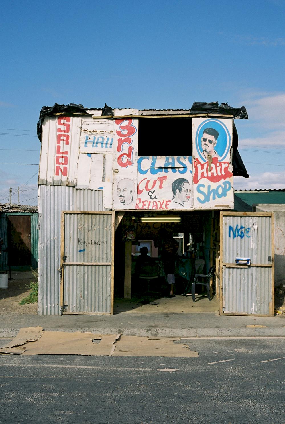 Our South African adventure was one of our best to date. We wandered Cape Town‘s hip streets, discovered a suburb of brightly painted houses, enjoyed beautiful food and wine in the prettiest vineyard, drove through the South African desert, and explored the dramatic coastline. But one of the most memorable visits was to a local black township where we discovered these colourful barbershops and salons.