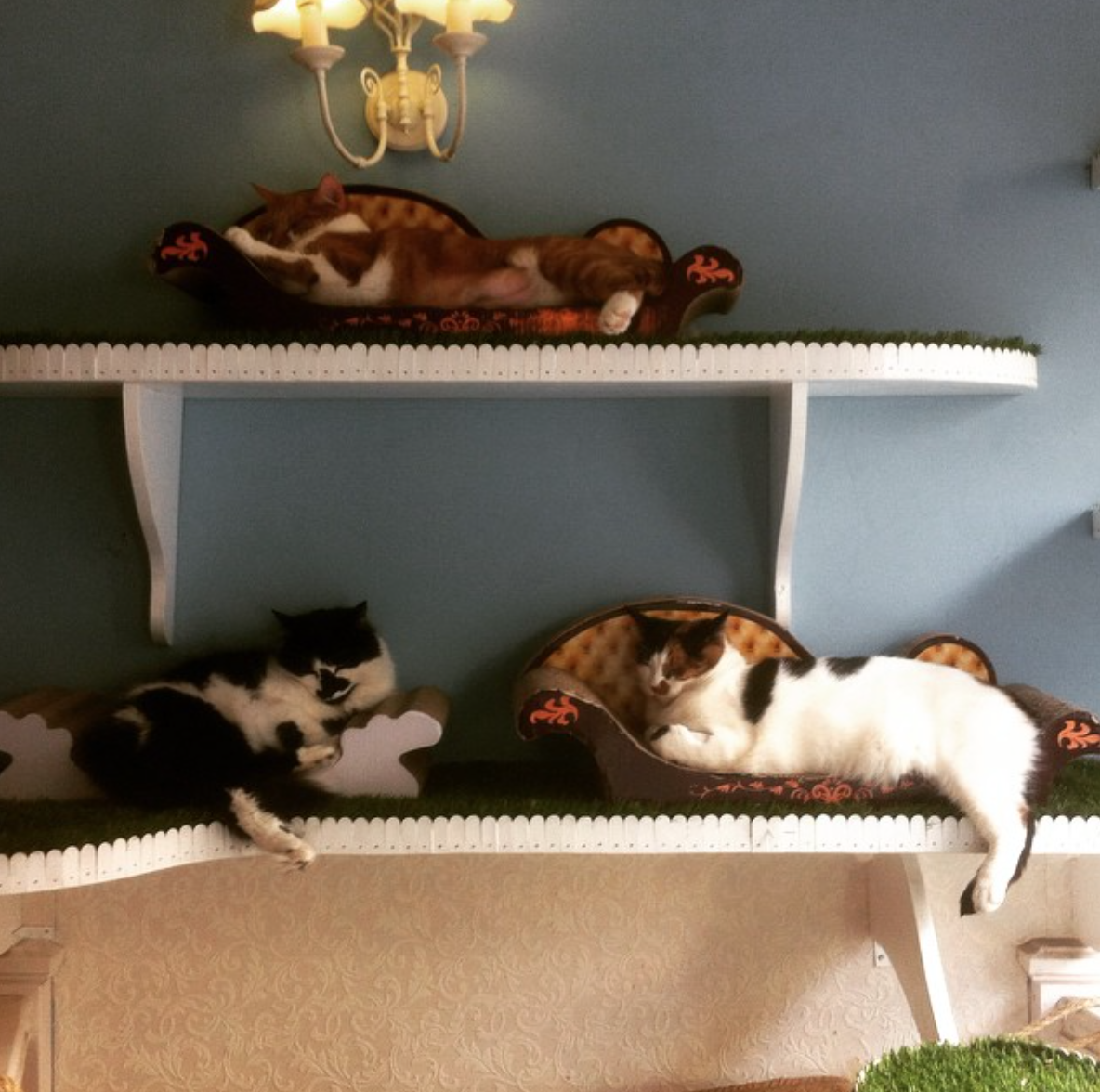 I’m a cat person, so am excited to find out about Lady Dinah’s Cat Cafe in Shoreditch, London’s first-ever cat café! It takes inspiration from the Japanese who are already BIG on this kind of thing – apparently it’s a trend that started out in Osaka 10 years ago. The idea is that you book a 90-minute slot so you can relax, eat and drink in the company of the café’s 12 resident felines.