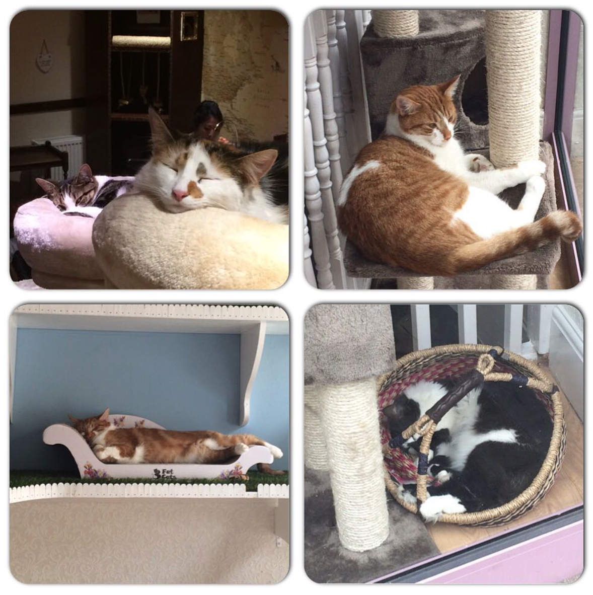 it was great, they gave us slippers to wear, we sat and had a cup of tea and some cake and made friends with a gorgeous all white kitten. there were plenty of others wandering around but he seemed to want to be with us 🙂 x