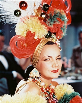The great hats she wore, covered with bananas and grapes and pineapples, have been copied throughout the world. Her platform shoes were sold everywhere. And millions followed her hip-swinging, eye-rolling example on the dance floor and learned to samba – including my Dad who thought it was funny to sing renditions of ‘I I I I love you verrrrrry much”, around the house. Usually on Friday nights, much to my mum’s horror. Anyway… seeing as today’s her birthday and social media is going crazy I thought I’d join in the fun with my own compendium of her most daring head pieces.