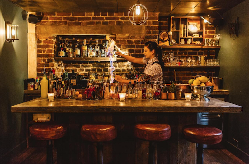 … you’ll find yourself inside a dark and cosy cocktail bar!