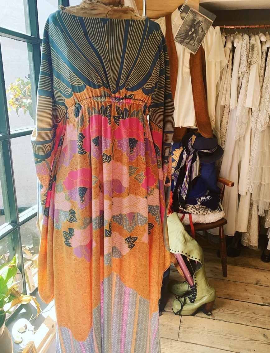 They’ve everything from 60s and 70s Ossie Clark, Biba and Bus Stop, 70s kaftans and jackets from India, big sunglasses, platform shoes, 40s tea dresses, 20s lawn dresses… So much to take in!