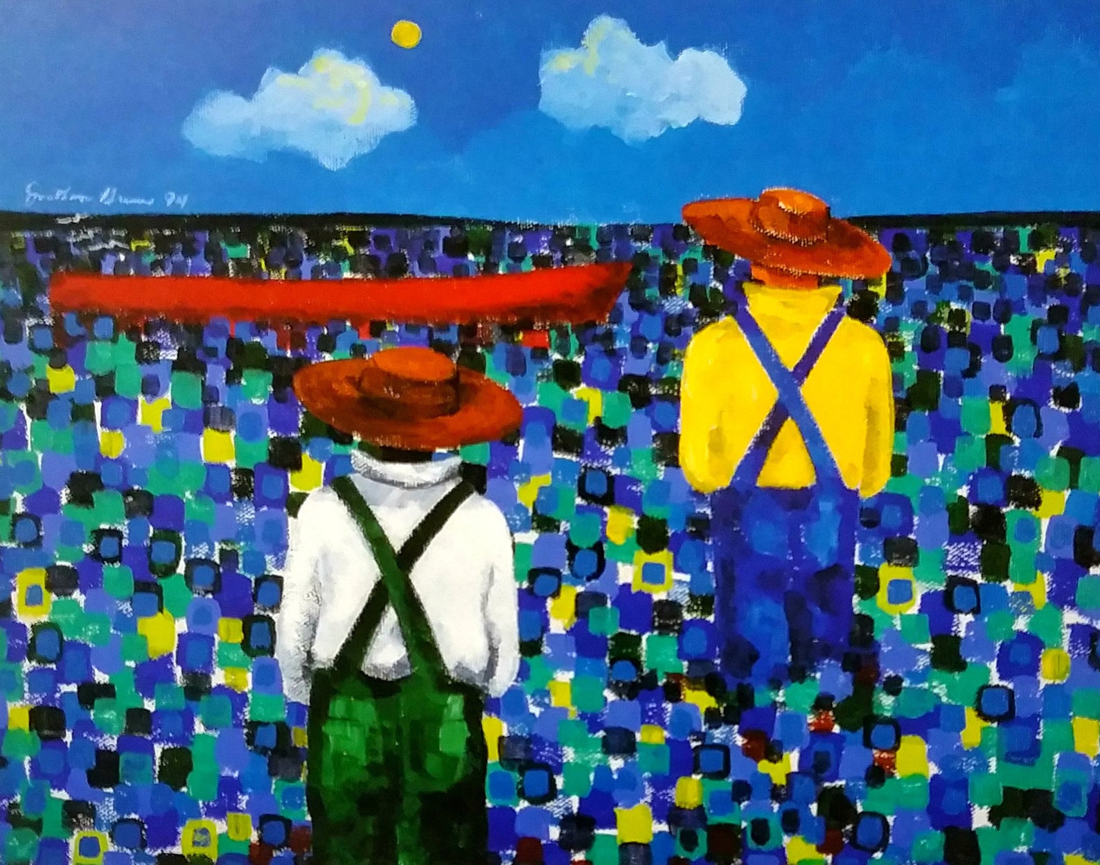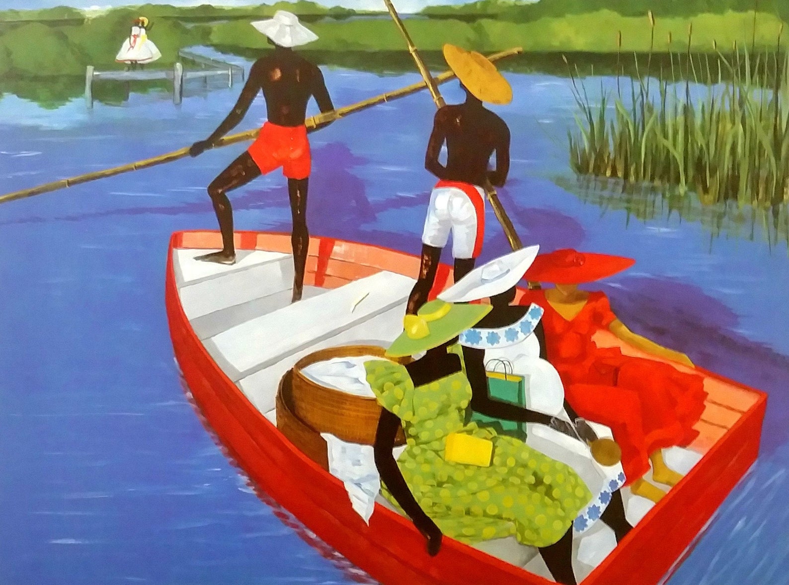 These dazzling scenes are the work of African-American artist, Jonathan Green, whose name I’m going to drop at my next socially distanced get together. He lives in America’s Deep South – in a place called Beaufort, on the South Carolina Sea Island, to be precise. His incredible vibrantly coloured sets of paintings celebrate the everyday lives, culture and heritage within his community. Sadly, it’s a way of life that’s slowly disappearing as the younger generations flee country for city life, which makes his work all the more vital as a way of documenting this community’s heritage.