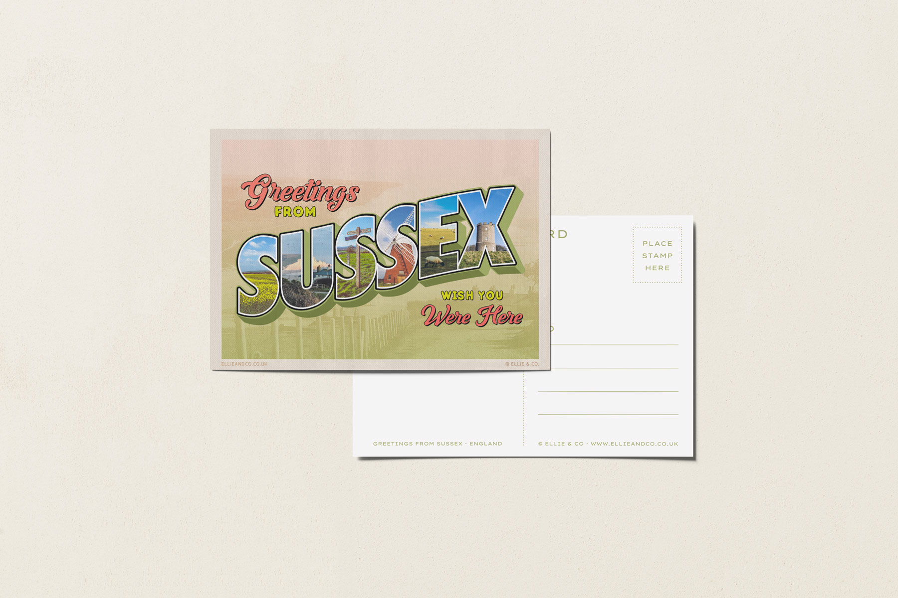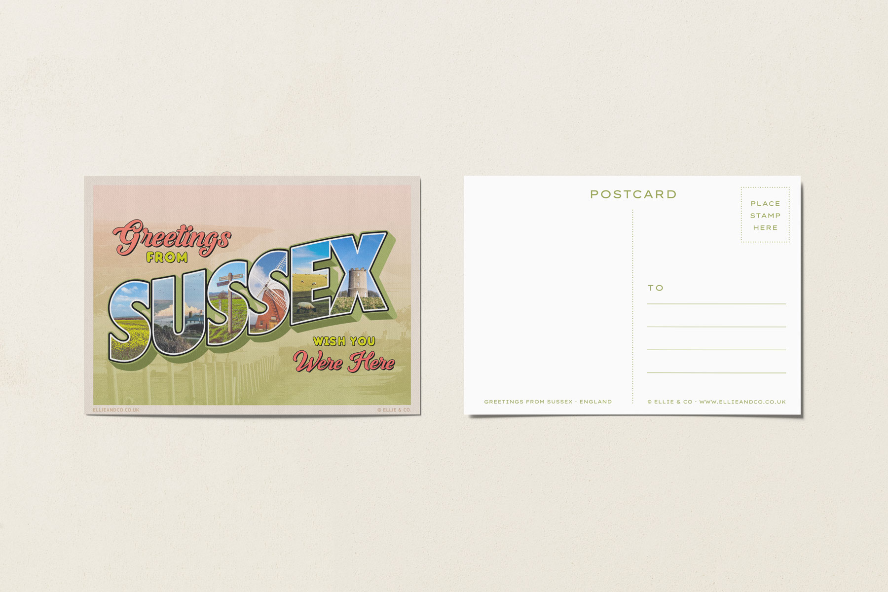 Send holiday greetings home from Sussex with this vintage-style Sussex postcard.